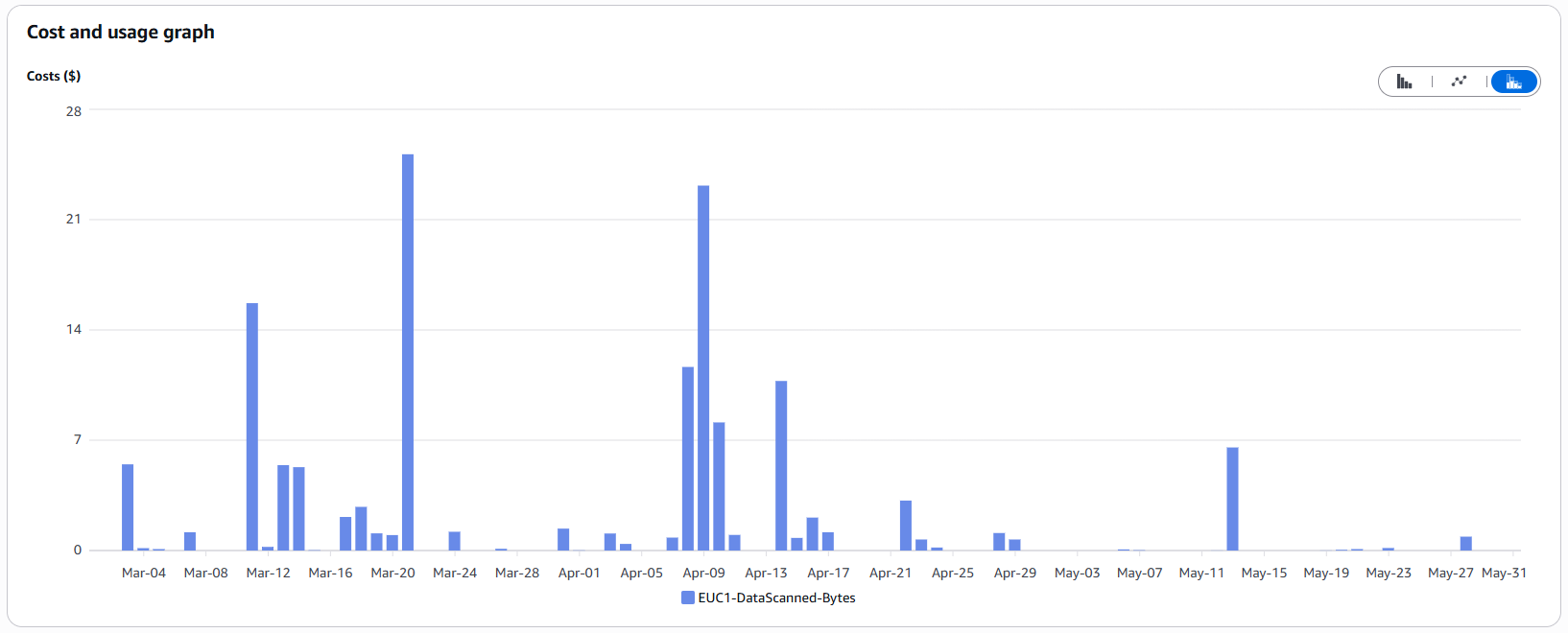 Doch das Sizing war nur die halbe Miete. Ab April 2025 bemerkten wir, dass unsere Gesamtkosten für DocumentDB trotz kleinerer Instanzen stetig stiegen. Eine Analyse im Cost Explorer zeigte den Schuldigen: I/O-Operationen.